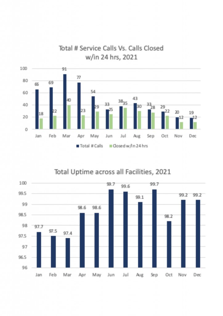 • In 2021, the unit uptime increased to a consistent level of above 99% across all facilities.