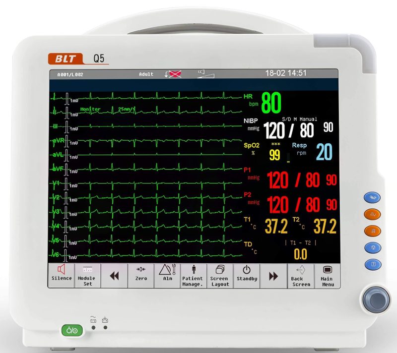Biolight Q5 Modular Patient Monitor. The Q5 is Modular Patient Monitor is Portable with Flexible Plugin. A whole new visual sense! 12.1″ TFT display color screen with 800 x 600 Resolution. The Q5 has a 10 level adjustable control for screen lightness. It also has 10 channel waveforms on display screen and can be upgraded to 12 channel.