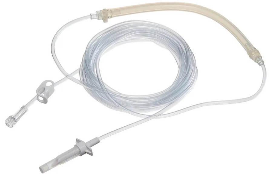 SINGLE-SPIKE INFILTRATION TUBING (Standard tubing) 15.5 feet in length with a silicone pressure tube insert for use with your infiltration pump. Box of 20 for HK Klein infiltration pump.