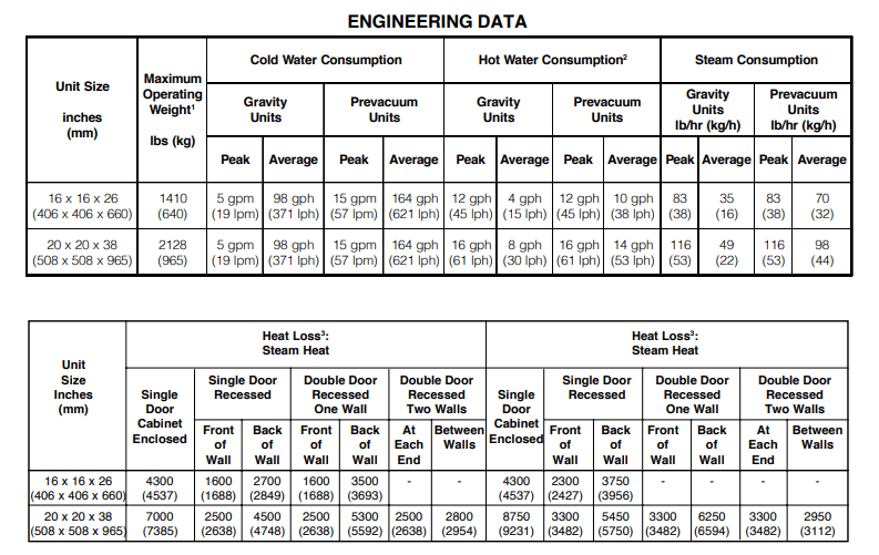 - Outlet box for 120 VAC, 50/60 Hz, 1 Amp (5.5 Amps for electric units) electric service to the sterilizer controls.